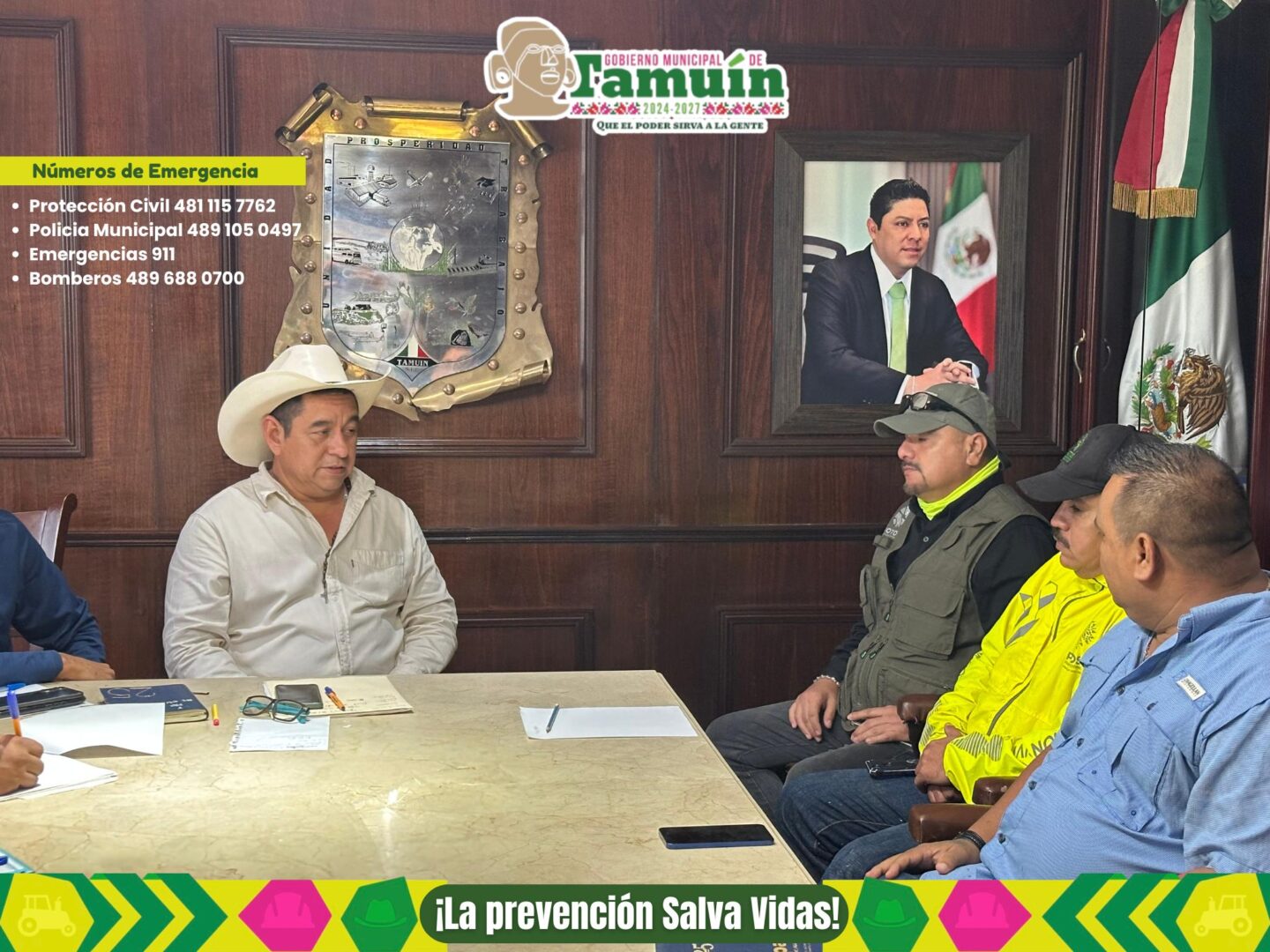 Durante la sesión, también estuvieron presentes el equipo de Protección Civil del Estado y Bomberos Voluntarios de Tamuín, se establecieron estrategias de atención inmediata, monitoreo de zonas de riesgo, limpieza de drenes y alcantarillas, así como la disposición de brigadas de emergencia.