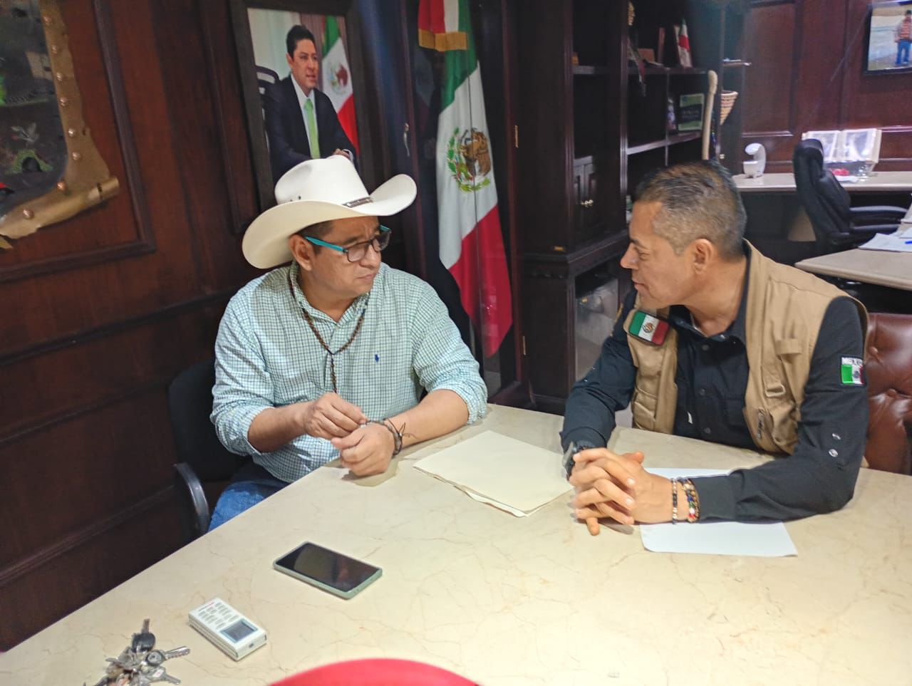 El Presidente Municipal de Tamuín, Marcelino Bautista Rincón, sostuvo una reunión de trabajo con el Titular de la Coordinación Estatal de Protección Civil, Mauricio Ordaz Flores, con el objetivo de evaluar la situación actual del municipio y reforzar las medidas preventivas ante la llegada de nuevas lluvias pronosticadas para las próximas horas.