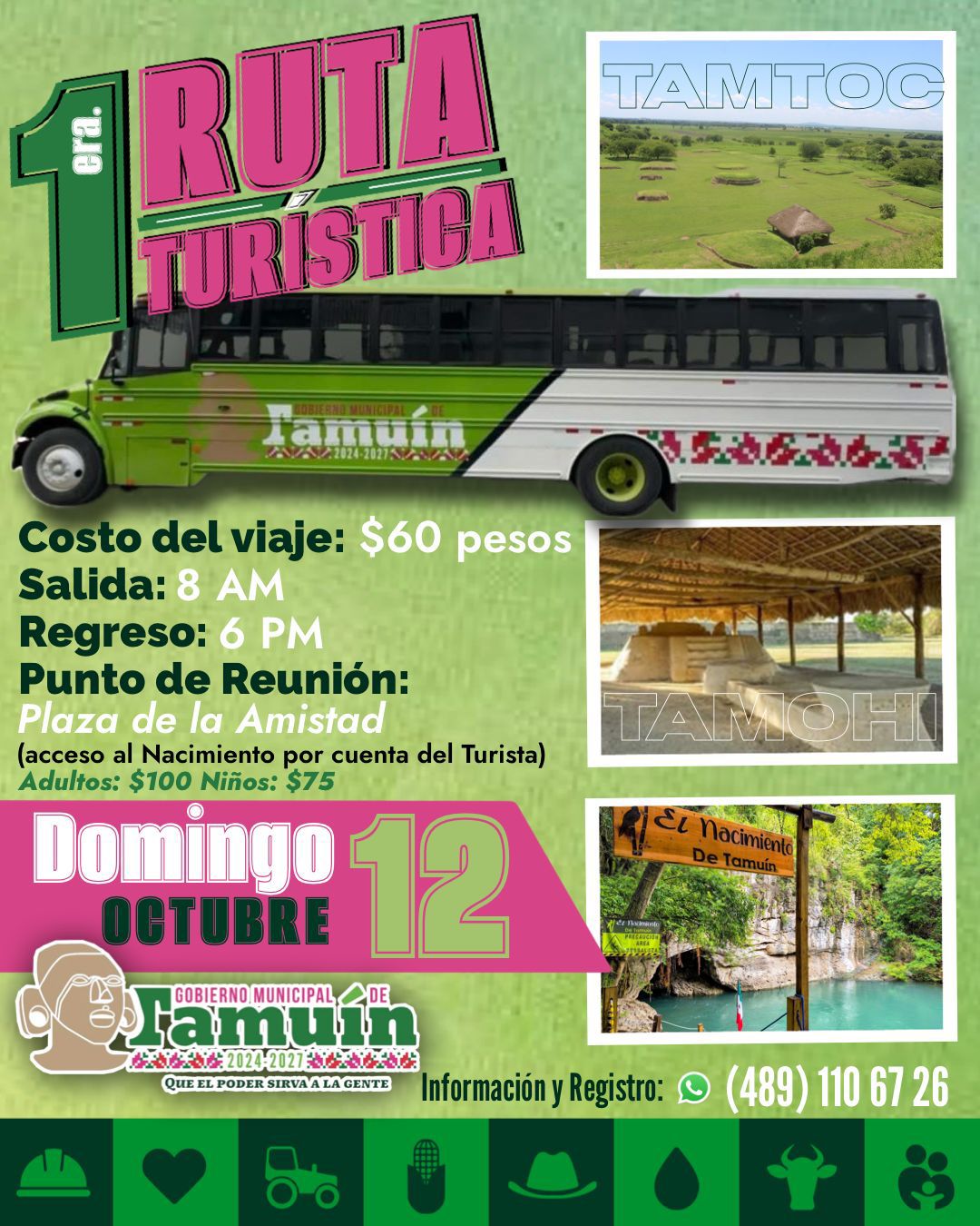 ✅Con el firme compromiso de promover la riqueza cultural, natural y arqueológica de nuestro municipio, el presidente municipal de Tamuín, Marcelino Bautista Rincón, a través de la dirección de Turismo a cargo de la Lic. Lucia Ramírez Hernández, realizarán un recorrido especial por los principales puntos turísticos de Tamuín, con el objetivo de fortalecer la identidad local y fomentar el turismo como motor de desarrollo económico.