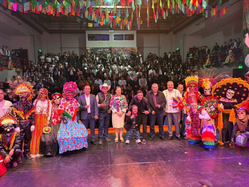 En esta presentación del programa hizo su participacion la comparsa de Huehues «Hidalgo Tradicional» que acompaño al Presidente Marcelino Bautista Rincón y al Gobernador Ricardo Gallardo Cardona.
