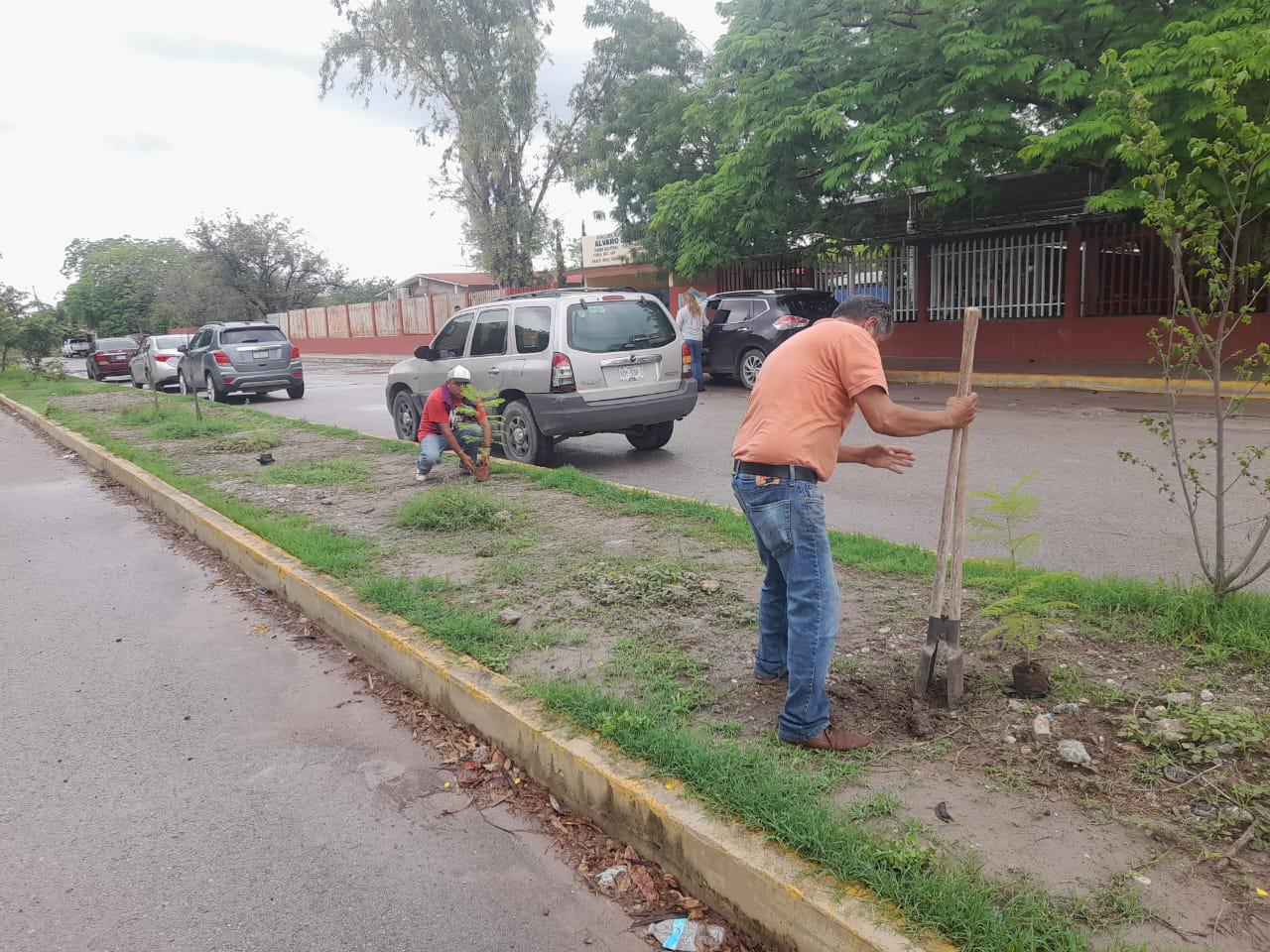 Con el apoyo del personal del departamento de Parques y Jardínes que dirige Reyes Tomás Guerrero Álvarez, se aprovechan las condiciones del clima con la presencia de lluvias en la localidad, continuarán con la aplicación del programa en diferentes zonas de la cabecera municipal, sembrando plantas y arbolitos de diferentes especies que serán vida a las áreas verdes y con el tiempo serán de gran ayuda en las temporadas de calor protegiendo de los intensos rayos de sol.