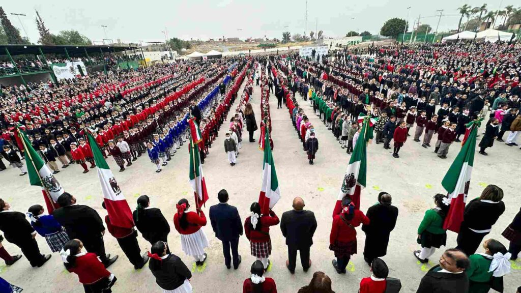 En el marco de la celebración del día de la bandera, el próximo 24 de febrero, el Gobernador dijo que la bandera nacional es el estandarte que nos une como pueblo, para enfrentar los desafíos, con el reflejo de nuestra historia, por lo que felicitó a cada niña y niño que hoy jura lealtad al lábaro patrio, porque, “con ustedes está el futuro de San Luis Potosí y de México. Que nunca dejen de luchar por sus sueños y que siempre recuerden que la grandeza de nuestra patria está en su gente”.